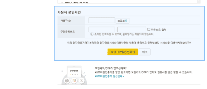 해당 메뉴에 들어가면 주민등록번호 입력과 함께 휴대폰 본인인증 또는 계좌 인증을 진행하게 됩니다.